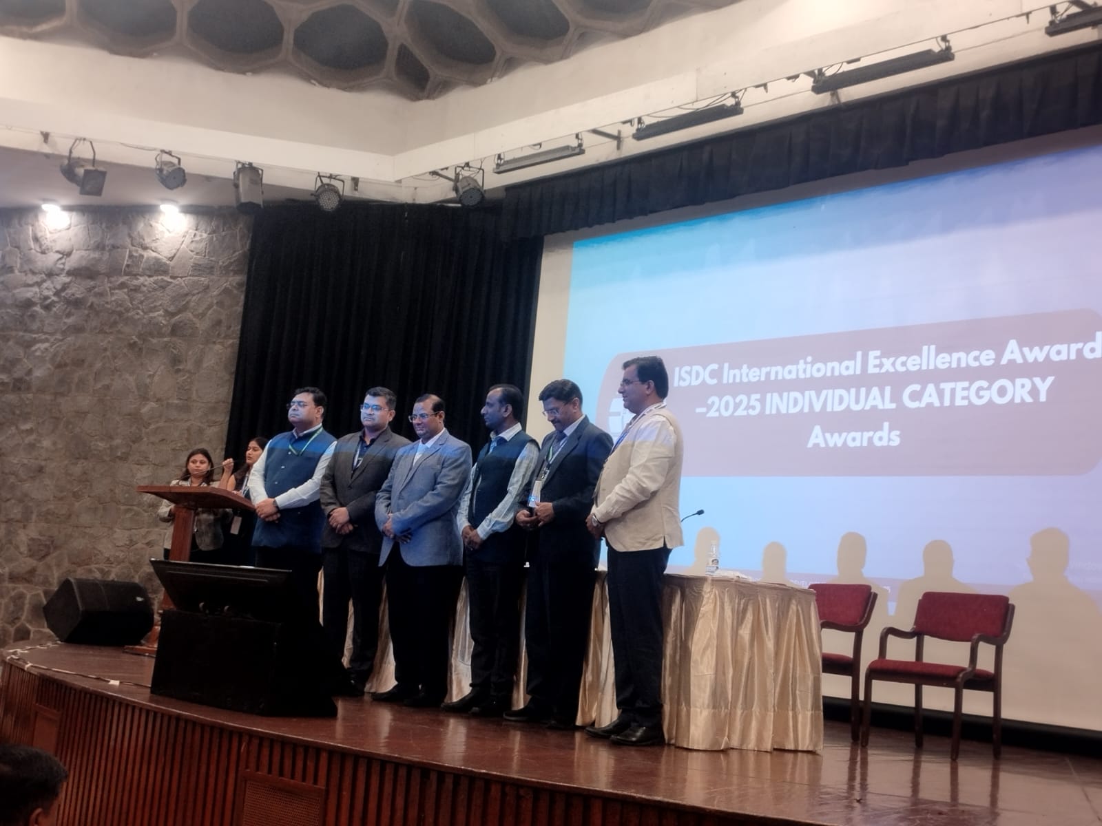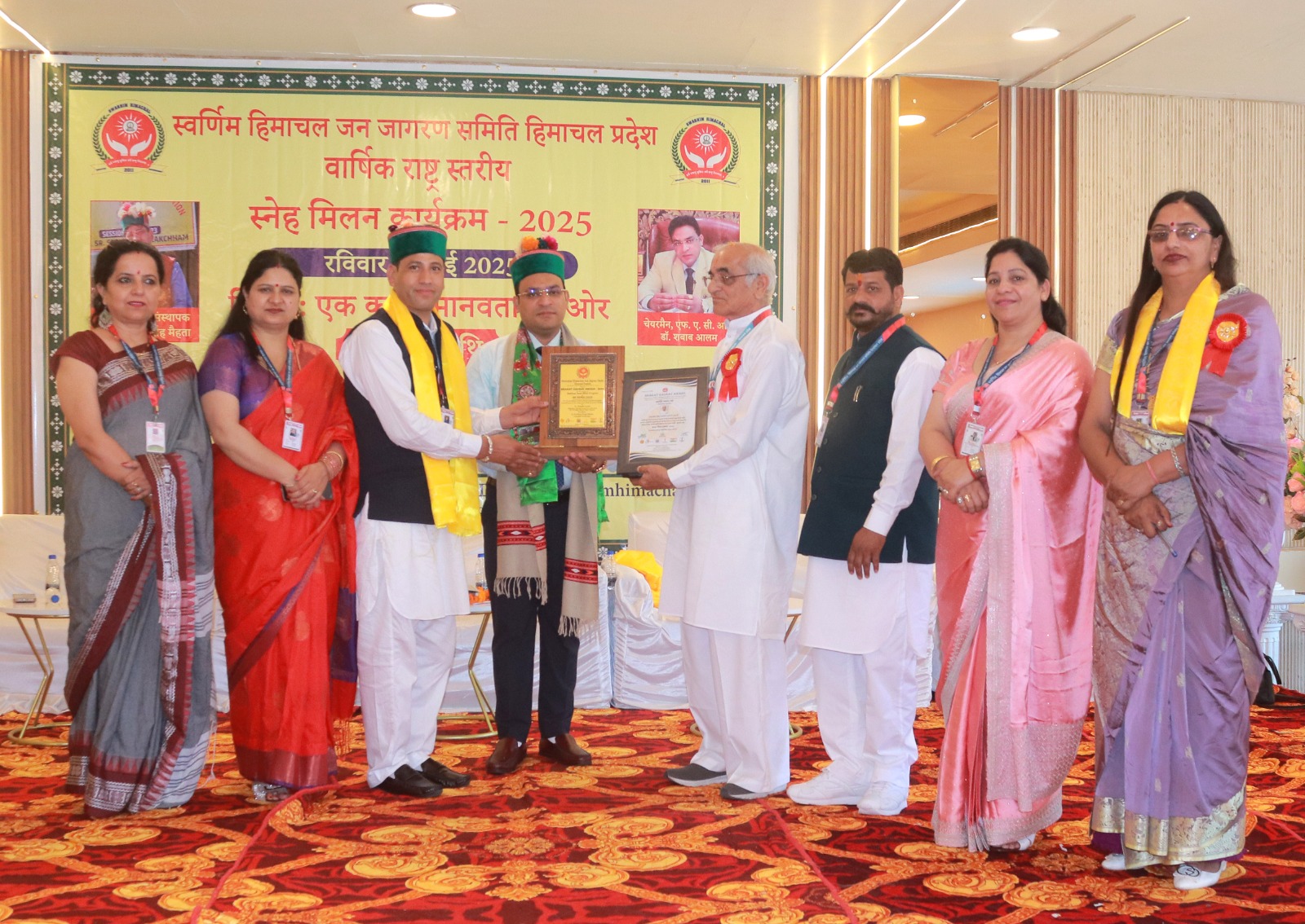Dr. Kuldeep Singh & Dr. Shabab Aalam giving excellence award at Swarnim Himachal annual event 2025.